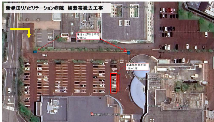 駐車場の改修工事に伴うご案内 下記の日程で駐車場一部の改修工事を行います。 <期間> 令和8年1月6日(火)~1月9日(金) 工事期間中、車椅子専用駐車場スペース含む一部駐車場が使用できない状態となります。 来院される皆様にはご不便ご迷惑をおかけいたしますが、何卒ご理解ご協力を受け賜わりますようお願い申し上げます。